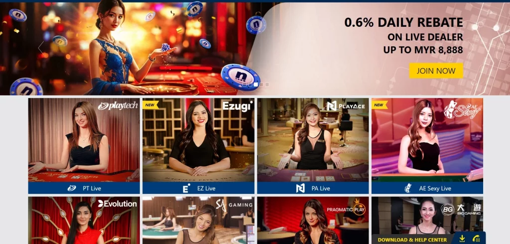 Live DealerReal-time table games hosted by professional dealersRoulette, Blackjack, Baccarat, Game ShowsEvolution, Playtech, SA Gaming, Microgaming